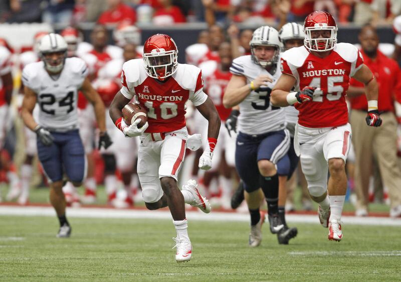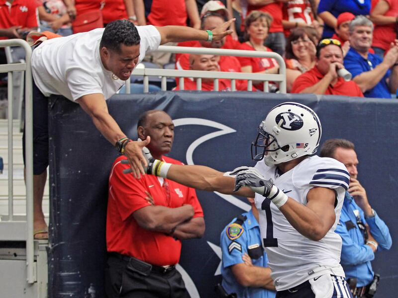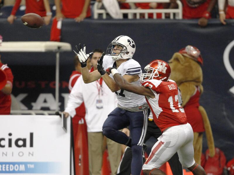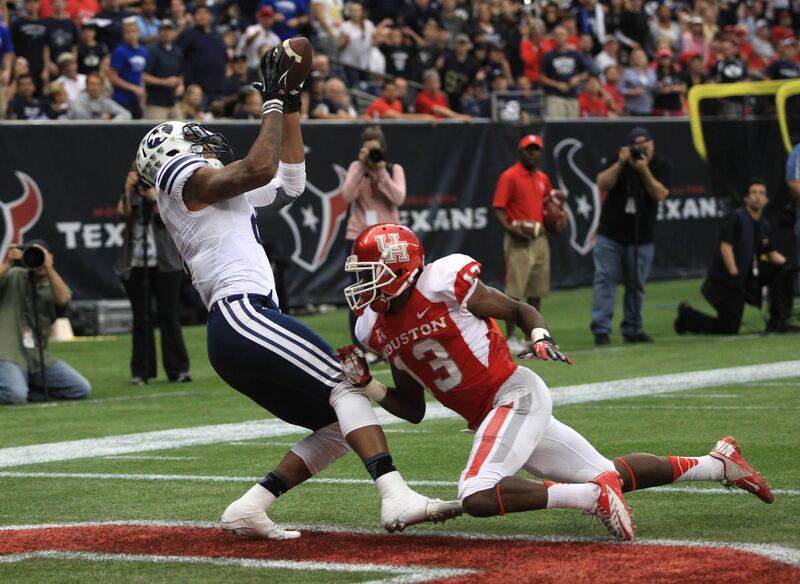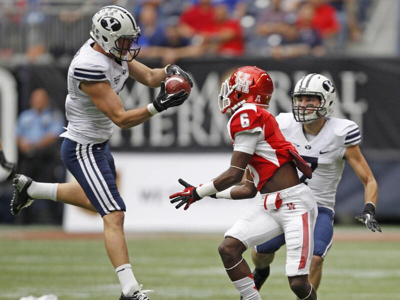 The BYU senior caught seven passes for 156 yards and a touchdown in the win. His longest was a 53-yard catch in the fourth quarter, and it loomed huge for the Cougars, who were in a sprint to the finish with Houston.