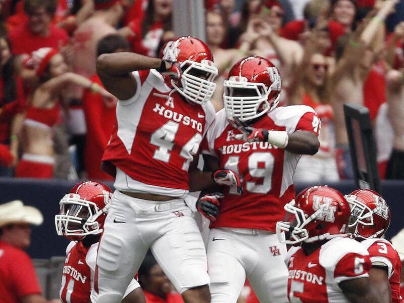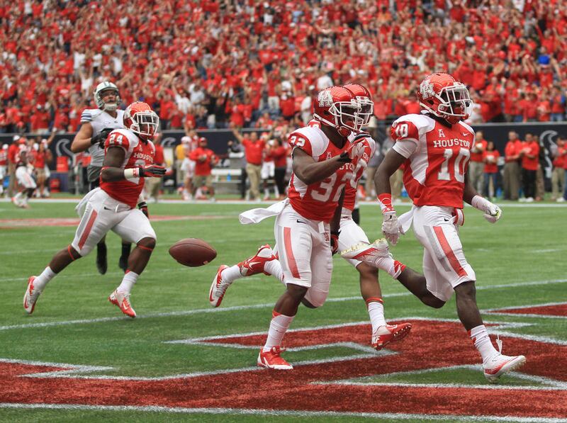 Hoffman’s touchdown came with 12:57 to play in the game, a 25-yard catch from Hill that put the Cougars ahead of Houston 41-40. On that play, Houston defender Thomas Bates got caught hanging onto Hoffman and earned a pass interference call. It was almost a copy of Hoffman's TD catch in the Georgia Tech game.