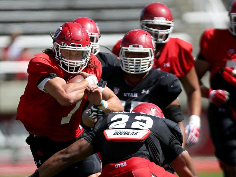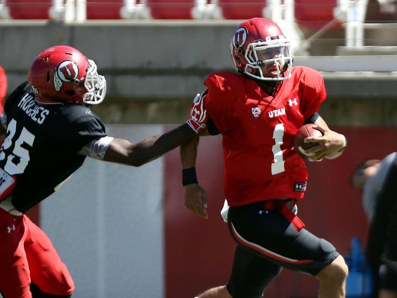 SALT LAKE CITY — Utah quarterback Travis Wilson returned to live action for the first time since suffering a concussion and being diagnosed with an intracranial artery injury last November. The junior took hits in Saturday’s scrimmage at Rice-Eccles Stadium as his battle with Kendal Thompson for the starting job reached crunch time.