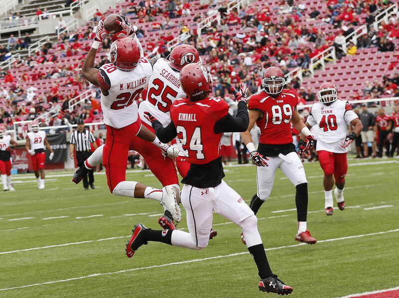SALT LAKE CITY — It took a while, all the way to the final play as a matter of fact, for a touchdown to be scored in Utah’s Red-White Game Saturday. That’s when sophomore safety Marcus Williams picked off a pass by Conner Manning and returned it 99 yards for a score.