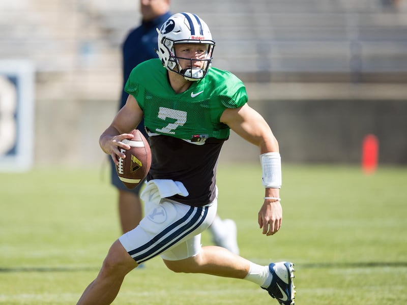 “Right now, we’re just rotating. They’re getting equal reps,” Detmer said. “We’re all working at it together. They work great as a unit … They’re all starting to get it. They’re starting to get reads quicker and eyes to the right places. They’re starting to take that next step. Overall, the quarterbacks were playing pretty well … We’ve still got a couple of weeks to tighten it up.”