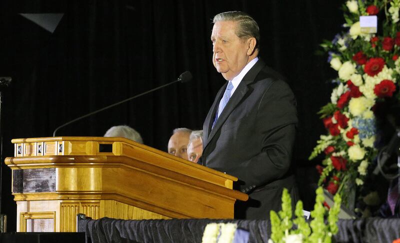 “Only the university’s namesake, good old Brother Brigham himself, may be the only better-known link in the nation to this university than is the name of LaVell Edwards,” Elder Holland of the Quorum of the Twelve Apostles of The Church of Jesus Christ of Latter-day Saints said Friday night at the public memorial service for Edwards, 86, who died Dec. 29.