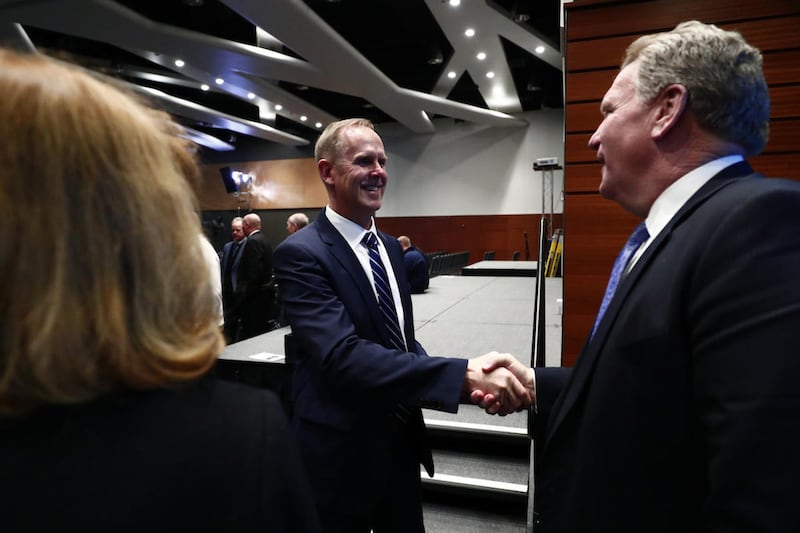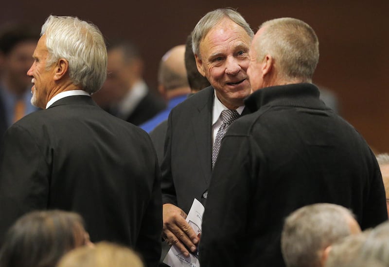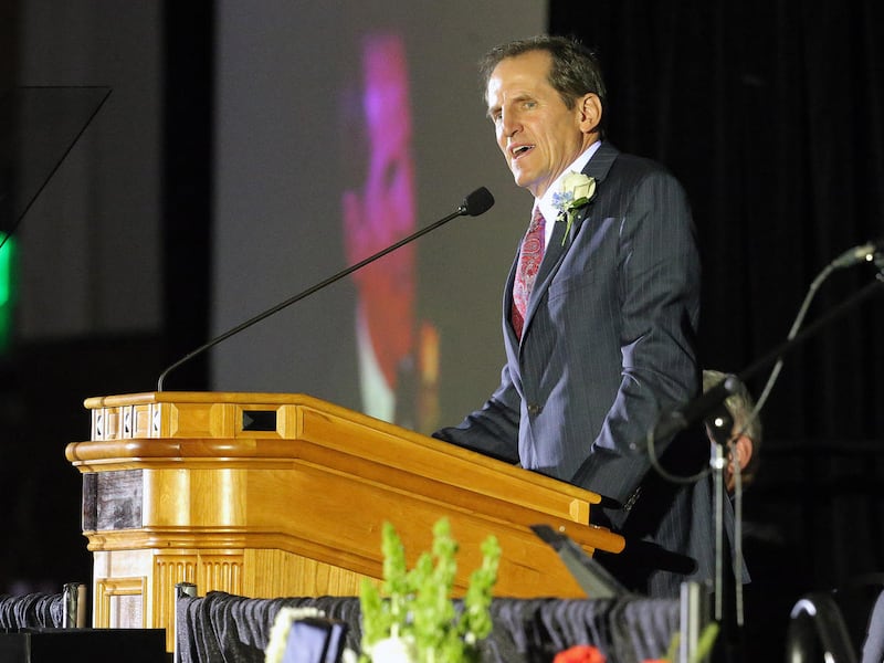 Bosco, who shared remarks as a representative of all of Edwards’ players, recalled the confidence Edwards instilled in him even after a rough beginning in his first start — in which the Cougars upset No. 3 Pittsburgh and kicked off a season that ended with a 13-0 record and a national championship. Bosco said a couple of days after that monumental victory, he could barely move as a result of the beating he absorbed during the game. He called Edwards’ son, Jimmy, for a priesthood blessing.