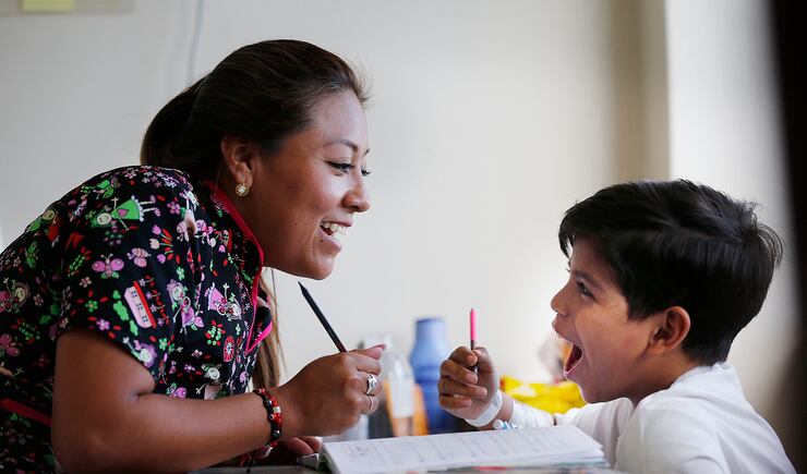 “There are days when he’s really angry,” said his teacher, Vanessa Garcia. “We try to help them laugh and be part of the class.”