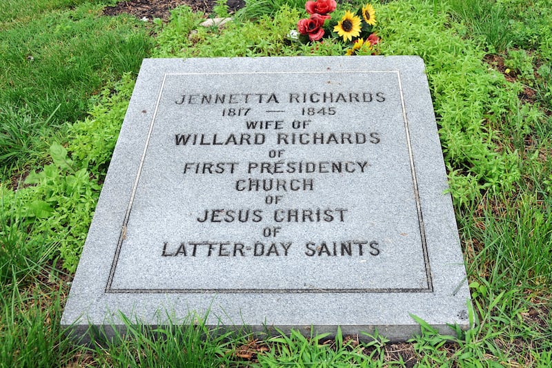 Jennetta did not have to leave Nauvoo. Although she seemed to rally briefly and raise her husband’s hopes, on July 9, 1845, she stopped breathing. Willard wrote: “She appeared like a person asleep. … Little Heber John came to me and said, ‘Pa, will you bury Ma in the garden? If you do I can bear it, if you do not I cannot bear it'” (Willard Richards to John Richards, July 18, 1845, as quoted in "Women of Faith in the Latter Days," p. 296).