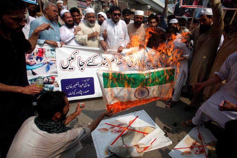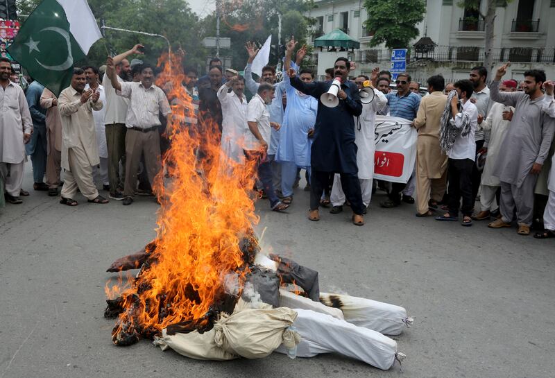 Hundreds of people around Pakistan and the portion of Kashmir it controls rallied against Modi, burning him in effigy and torching Indian flags to condemn India's moves.