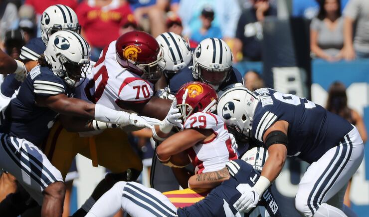 The game was tied 17-17 at halftime and neither team could score in the third quarter. Near the end of the period, BYU decided to go for it on fourth-and-2 from the Trojan 9-yard line but failed to convert.