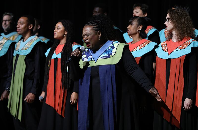 What I like about the Unity Gospel Choir is how random it looks, but how unified it sounds. Most of the singers are African American, like the director, but a half-dozen white faces can be found scattered among them. And Debra Bonner tells me the diversity goes way beyond race and religion. She says the choir has people who’ve dealt with drug problems or abuse problems. One singer struggles with homelessness.