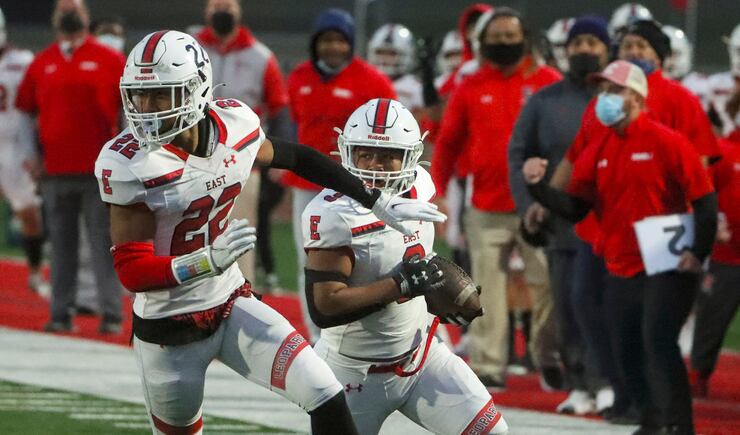 “In the three prior games we played them and lost, we scored a lot of points,” said East coach Brandon Matich. “We knew we could score and we knew we could run the ball, but we just weren’t defending them very well. We worked our tails off in changing different coverages, making sure we were mixing things up, and we didn’t want to move too much with their motions. We gave up a lot with moving before. Our defensive staff did a remarkable job tonight.”