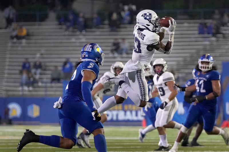 USU receiver Deven Thompkins’ consistent delivery of huge yardage plays for Utah State, elevating as the nation’s top receiver (1,441 yards) as he cements remarkable chemistry with Arkansas State transfer QB Logan Bonner.