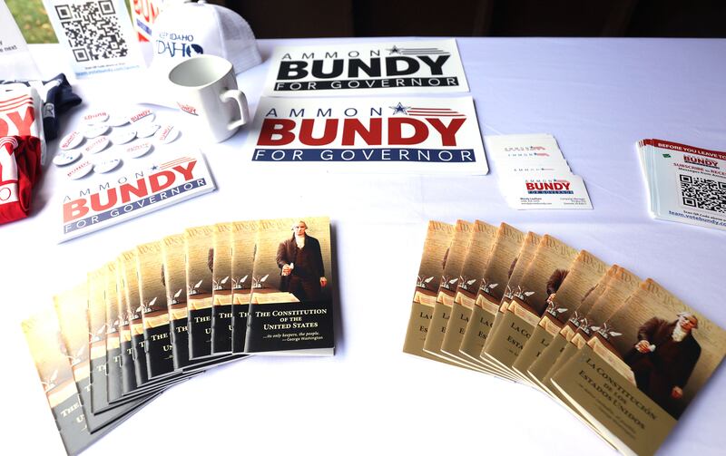 At Ammon’s meet-and-greet in Idaho Falls, he offered a few prepared remarks, then pulled out his phone. “The Gem State Patriot News ran a poll the other day,” he said, before reading the results: Bundy held a massive lead — earning 62% of votes. What he didn’t mention was that the poll was conducted online and was for readers of the ultraconservative publication, Patriot News.