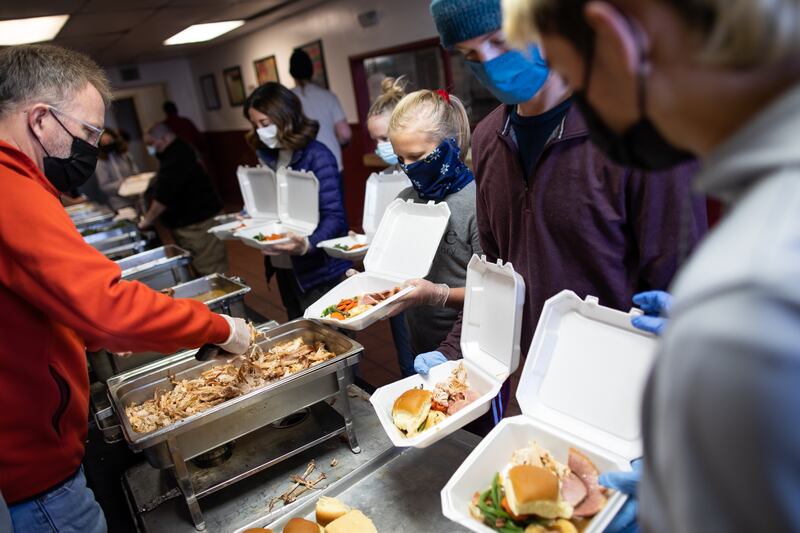 Sometimes the only thing that differentiates the servers from those being served is an apron, hairnet and gloves.