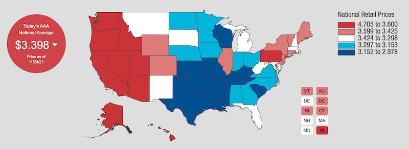 And it likely won’t change the West’s dubious ranking as the most expensive region to fill up. Here’s AAA’s gasoline prices by state as of Wednesday, from highest prices to lowest: