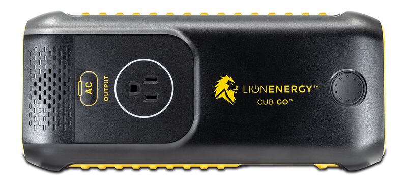 Lion Cub GO is the smallest portable generator to have an AC outlet and up to 150W of output. Weighs 3 pounds and can be taken on an airplane. Solar panel add-on sold separately.