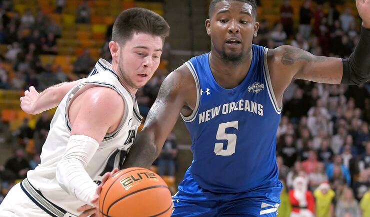 UNO head coach Mark Slessinger, who also at the helm when the Privateers lost, 76-66, in Logan on Dec. 19, 2016, had a much more difficult time in his return to the Spectrum. Due to health and safety protocols, several UNO players and members of their basketball staff were unable to make the trip to Utah. Junior forward Simeon Kirkland (14 points, 14 rebounds) was the only player to score in double-figures for New Orleans, who was outrebounded by a mere 40-38 margin.