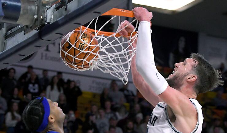 Junior center Trevin Dorius came through with a near-perfect outing off the bench, going 6-for-6 from the field — including four dunks — to equal his career-high of 12 points. The former Wasatch High star, who was slowed early in the season by a broken foot, also pulled down nine rebounds in just 17 minutes.