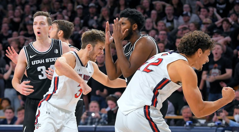 Utah State also held a 56-53 advantage with just under three minutes remaining, but the Gaels were able to execute a little bit better down the stretch while also benefitting from several questionable calls. Most notable was a play with the score tied at 58-58 and a couple of seconds left when Bean attacked the basket and appeared to receive contact, but no foul was called on the Gaels. However, Bean was called for a foul as he went after the loose ball, setting up Ducas’ game-winning free throws.