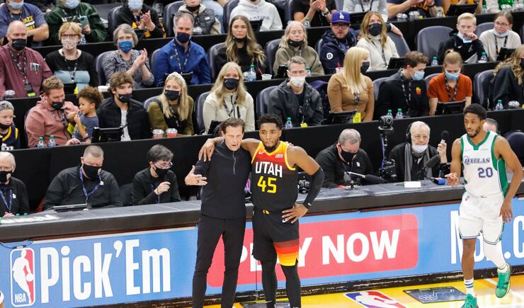 - Early in the game Mitchell made a beautiful spin move to the basket and converted on an and-1 play. But during the play Mitchell looked like he twisted his ankle and came away from the scene wincing and walking a little bit gingerly. Throughout the game there were a couple of times where he seemed to be favoring his right foot, and he was experiencing tightness in his back early in the game, but he also made quite a few athletic plays including a really emphatic dunk. I don’t think that Mitchell is seriously hurt, but it’s definitely something to keep an eye on, especially considering that the Jazz are about to head into one of the toughest stretches of their schedule.