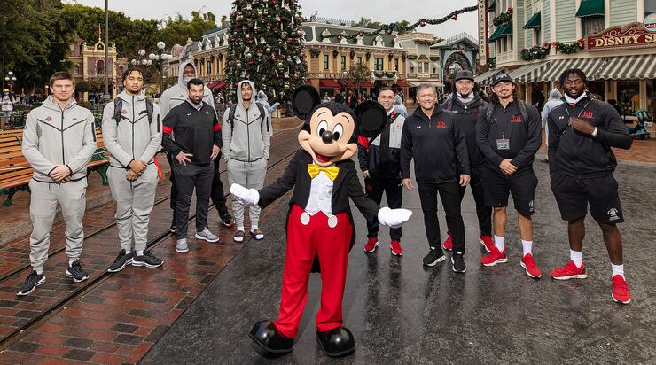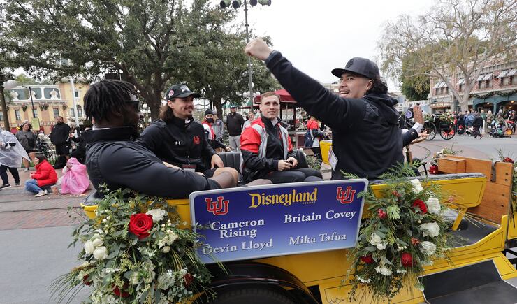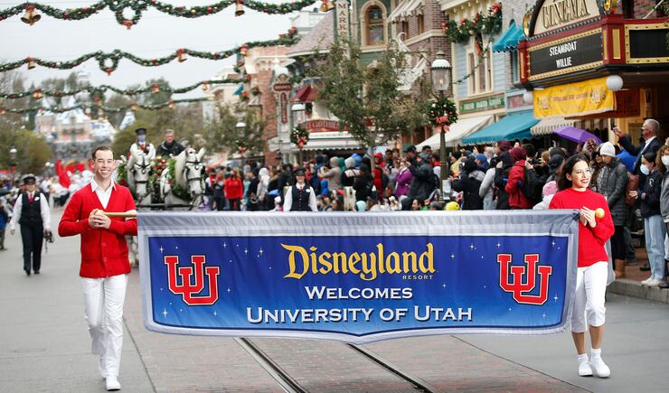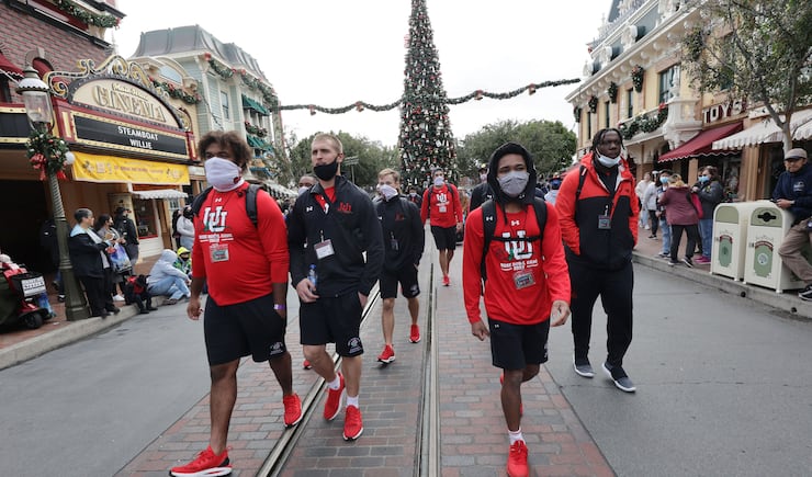 LOS ANGELES — After practicing in the morning, both Utah and Ohio State spent part of Monday at Disneyland, “The Happiest Place on Earth,” participating in a cavalcade down Main Street in Downtown Disney and enjoying the rides on an overcast, brisk, rainy afternoon.