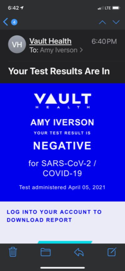 Both Vault and Costco allow an entire family to take the test on the same Zoom call. You seal it up, use a prepaid envelope and drop it to a UPS store. One advantage for the Costco option is that you’re able to schedule your test time. With Vault, you simply log on when you are ready to test. I was afraid we might get stuck in a virtual waiting room forever, but the process was quick. I was nervous about receiving our results in time, so I booked backup rapid tests at a Walgreens near the Las Vegas airport just in case. But we did not need them because we got results from Vault on Tuesday evening, just 30 hours after taking the test. (Our flight was for Thursday.)