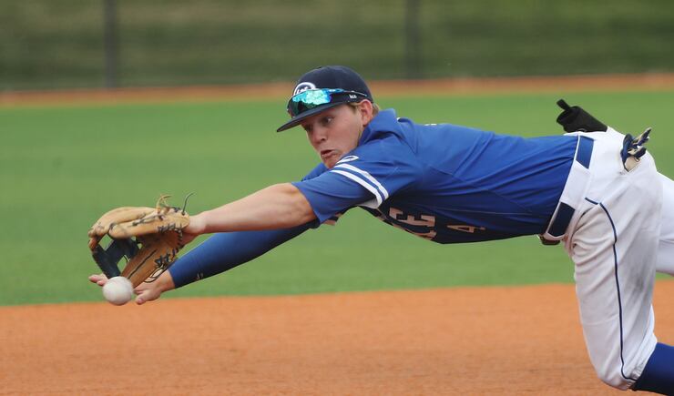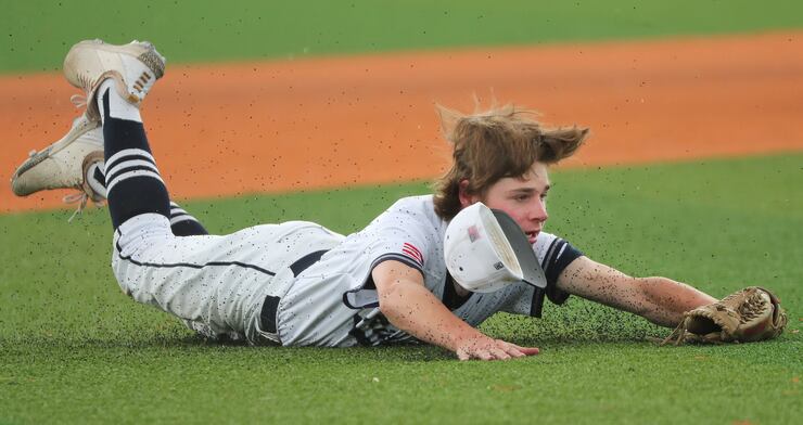 Snow Canyon’s Landon Frei delivered the highlight play of the game in the top of the second inning when he leaped to catch a line drive from Dixie’s Jaxon Mackelprang, and then flung the ball toward first base where he caught Luis Acuna off base for the double play.