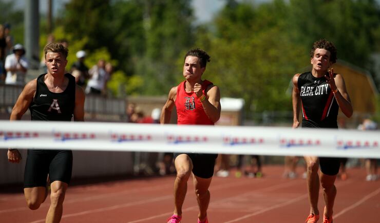 100 meters — 1. Cody Hagen, Corner Canyon, 10.75; 2. Harrison Taggart, Corner Canyon, 10.97; 3. Bryson Cortes, Syracuse, 11.02; 4. Cade Harris, Roy, 11.09; 5. Parker Kingston, Roy, 11.09; 6. Noah Kjar, Corner Canyon, 11.19; 7. McCae Hillstead, Skyridge, 11.20; 8. Cody Hone, Bingham, 11.27.