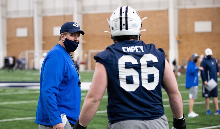 For 25 of his 33 seasons in the coaching profession, Funk has coached offensive lines. BYU is the 15th school for which he has coached, but there’s one distinction about this move that he will never forget. He did it during the COVID-19 pandemic.
