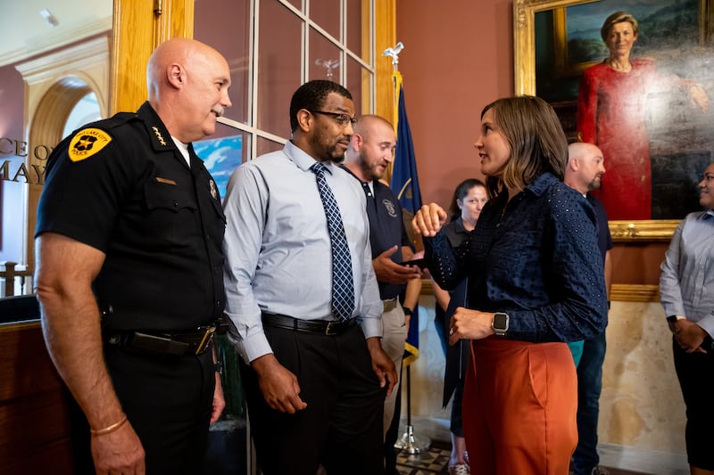 “I think the people behind me would agree that in order to make the changes that we want and need to make together, and just to do the fundamental work of answering calls for services that this city asks our officers to do, we can’t do that with fewer people,” the mayor said. “We’ve seen the results of that.”