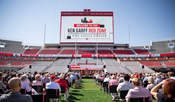 “This is a historic day,” athletic director Mark Harlan told the crowd of about 400, which included donors and supporters of the program. “They say things like, ‘If you build it, they will come.’ But we understand that they’re already coming to Rice-Eccles Stadium. What this allows is 4,500 more people to join the party. That’s an amazing thing.”