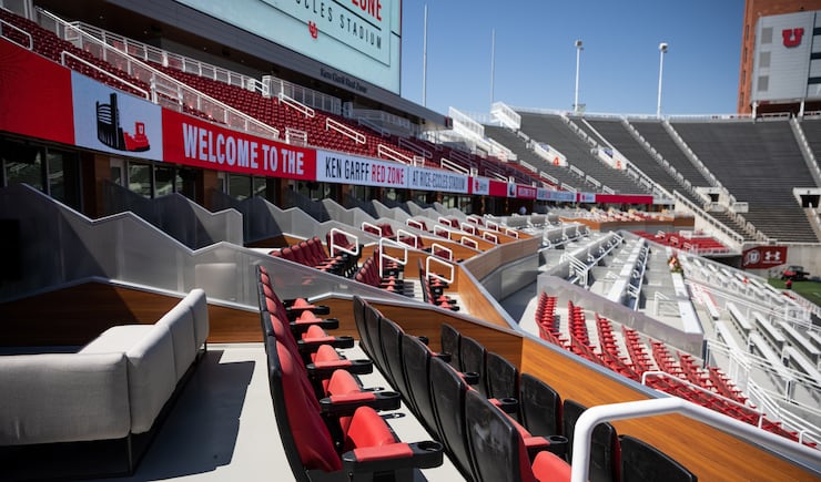 The Ken Garff Red Zone features new home and visiting locker rooms, sports medicine facilities and hospitality areas, the University Club restaurant, Diglisic Lounge, Layton Field Club and various premium seating options, including suites, loge boxes, ledge, club and premium terrace seating as well as additional bleacher seating.