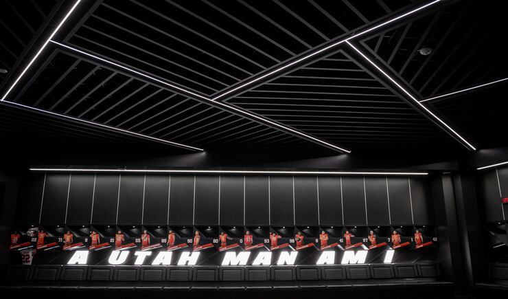 Utah’s new locker room is 5,300 square feet with 90 lockers. It features a one-of-a-kind locker design with hidden storage, wireless charging and locking box.
