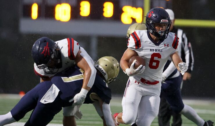 “Tonight was fun. I’ve never really played in rain kind of like that, but it was fun. The team came together, and it was nice,” said Rigtrup, who finished with 63 yards rushing to go along with his three touchdowns. “We do the same thing we always do, played Red Devil football. Rain, whatever it is, we always play the same.”