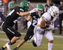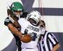 Deven Thompkins followed up his game-winning touchdown scoring performance against Washington State with a career-high 172 yards receiving Friday night (on eight catches). Thompkins took a short pass from Bonner and zoomed up the sideline untouched — thanks to outstanding blocking from fellow wideout Justin McGriff — to singlehandedly cap off what ended up being a one-play, 75-yard touchdown drive in the third quarter, which gave Utah State its first lead of the game.