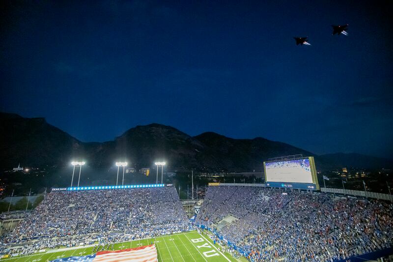 BYU and Utah football fans put the rivalry aside before Saturday night’s game to participate in some tributes in commemoration of the 20-year anniversary of the Sept. 11, 2001, terrorist attacks on the East Coast.