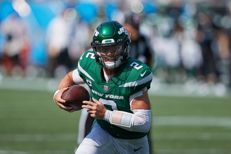 Headline on CBS: “Zach Wilson tumbles, Mac Jones on right track.” Headline in The Sporting News: “NFL Week 2 rookie QB grades: Zach Wilson flunks, Justin Fields flashes and Trevor Lawrence flounders.” The story graded each quarterback’s performance that week — Jones received a B, Fields a C+, Trevor Lawrence a D, Zach Wilson an F, Trey Lance an “incomplete.”