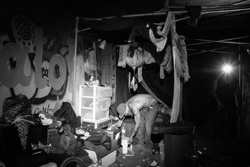 A year later, he was living on the streets. He was panhandling at an In-N-Out Burger one day when a group of older guys invited him down to their tunnel. Some of them had lived there for nearly a decade. They had a fire pit, a cooler full of cold beer, a surprising amount of furniture. They gave him a thin mattress, a bed and a nightstand.