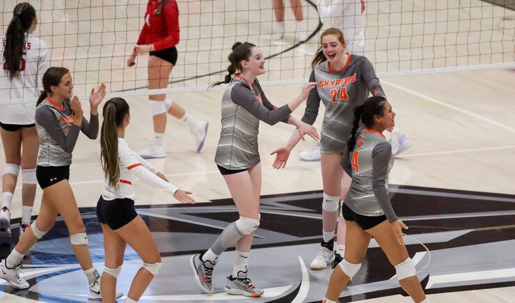 “We focused on our side of the net and once we did that we started to pass better for our offense, and defensively we served better so we could keep them out of their system. I think those two things were the difference in the game.” — Skyridge head coach Deanna Meyer