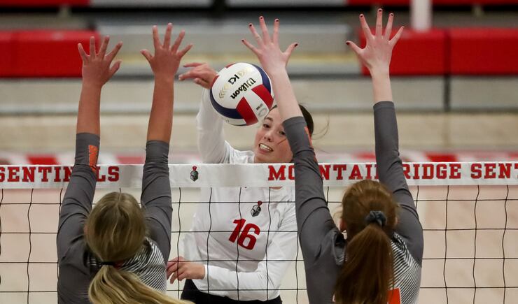 “(Mountain Ridge) has a killer back row attack that is very effective, and we hadn’t really seen that yet so we had to adjust to it,” Meyer said. “Once we learned that we could move around them and their block a little bit then we started playing much better.”