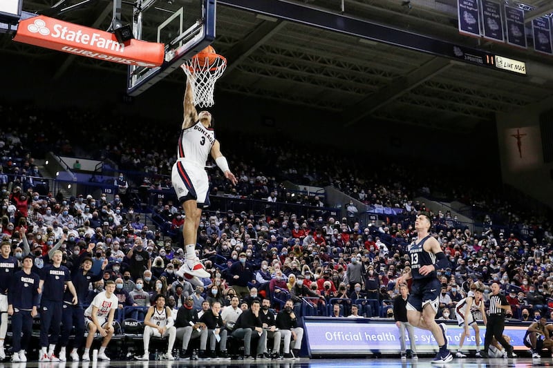 TIP-INS: Gonzaga has now won nine of the last 10 meetings against BYU … The Zags own the nation’s longest home win streak, which is now 61 games. Their last home loss came against Saint Mary’s in 2018 … Going into Thursday’s game, Gonzaga had not trailed in the previous 158 minutes, 47 seconds of game play. In Gonzaga’s nine home games this season (360 minutes), the Zags trailed for 4 minutes, 23 seconds. BYU led Gonzaga for four minutes, 12 seconds on Thursday.