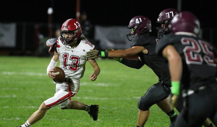 Morgan senior quarterback Nick Despain completed 17 of 27 passes for 202 yards and two touchdowns, his seventh straight game with two or more touchdown passes. He also carried the ball nine times for 44 yards. The Trojans totaled 186 rushing yards, led by senior Gunnar Lish who had 17 carries for 75 yards and two touchdowns.