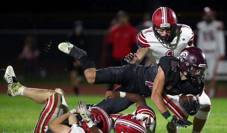 The defenses for both teams came to play in the first half, forcing a 3-and-out each way to start. After that, Morgan went to work, eating up chunk yardage on each play of its second drive. The Trojans scored first with a 1-yard touchdown by sophomore Jett Salmon up the middle.