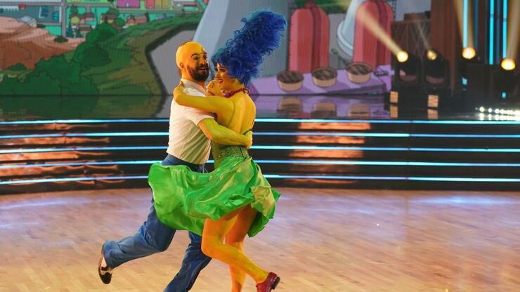 D’Amelio took the challenge to the next level by dancing to “The Simpsons” theme song while wearing a tall, blue wig like the one Marge Simpson wears, a routine that judge Derek Hough predicted is bound to go viral.
