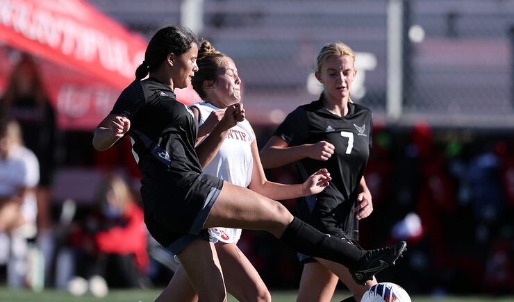 Cedar Valley naturally pushed players higher up the field throughout the second half in hopes of a breakthrough, but Bountiful’s now stout defense never wilted. Keeper Daisy Williams made a huge breakaway save in the 65th minute to keep her shutout and maintain the important two-goal advantage.