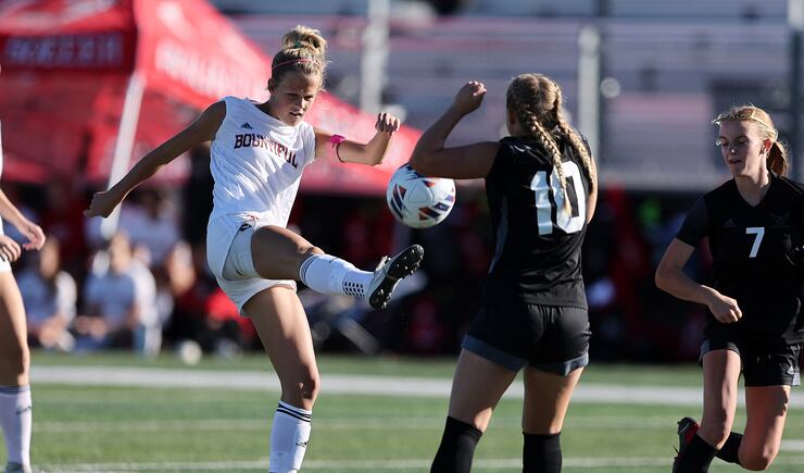 Bountiful struck first just six minutes into the match as Belle Sorensen slipped a through ball in behind Cedar Valley’s defense that Ellyse Kesler ran onto and whipped past the keeper for the early 1-0 lead.