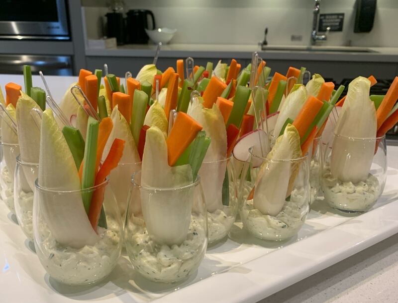 The board overflowed with an assortment of Beehive’s best cheddars like Apple Walnut Smoked and Queen Bee Porcini. Every cheese product from Beehive Cheese begins with its “buttery cheddar” base (called “Promontory”) before the company infuses and seasons the cheddars to perfection. Prosciuttos and crudites accented the cheese.