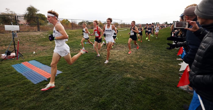 After Simmons time of 14:49.8, Herriman’s Noah Jenkins finished second in 15:08.5, and Lone Peak’s Jaron Hartshorn in third with 15:14.0.