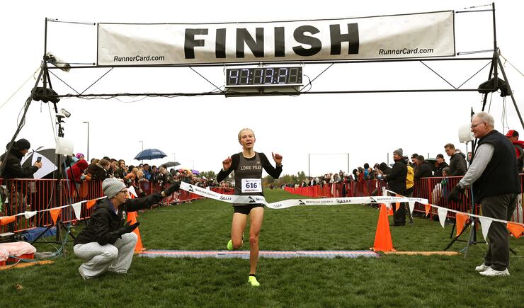 Shelby Jensen finished third for Westlake with a time of 17:51.6, while Lone Peak’s Addie Meldrum — a fellow two-sport fall athlete as she plays soccer — finished fourth with 18:12.7. Lone Peak’s other two scoring runners finished seventh and eighth, freshman Anna Bybee and sophomore Boston Bybee.