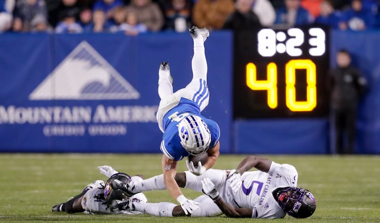 BYU’s Hall was just OK, completing 18 of 25 passes for 144 yards and two scores. He did the most damage with his feet, running for 60 yards on eight carries. But it was the one called back by the hold that BYU fans will remember the most.