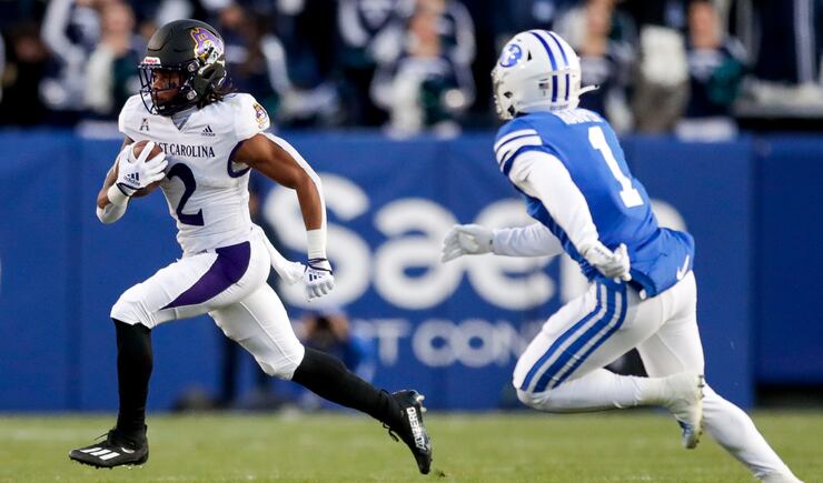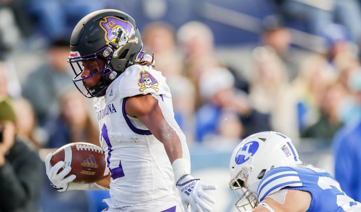 BYU’s Chaz Ah You, who made his first start of the 2022 season, suffered a lower leg injury on the Pirates’ second possession and did not return. Six plays later, Mitchell ran untouched up the middle to give ECU a 7-3 lead.