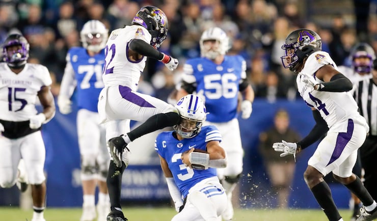 After getting thrashed in the final three quarters last week at Liberty, BYU’s defense actually came up with a three-and-out on ECU’s first possession, thanks to a low snap on first down that resulted in a 10-yard loss.